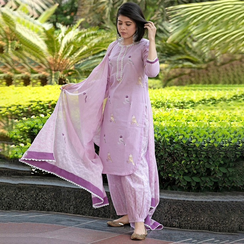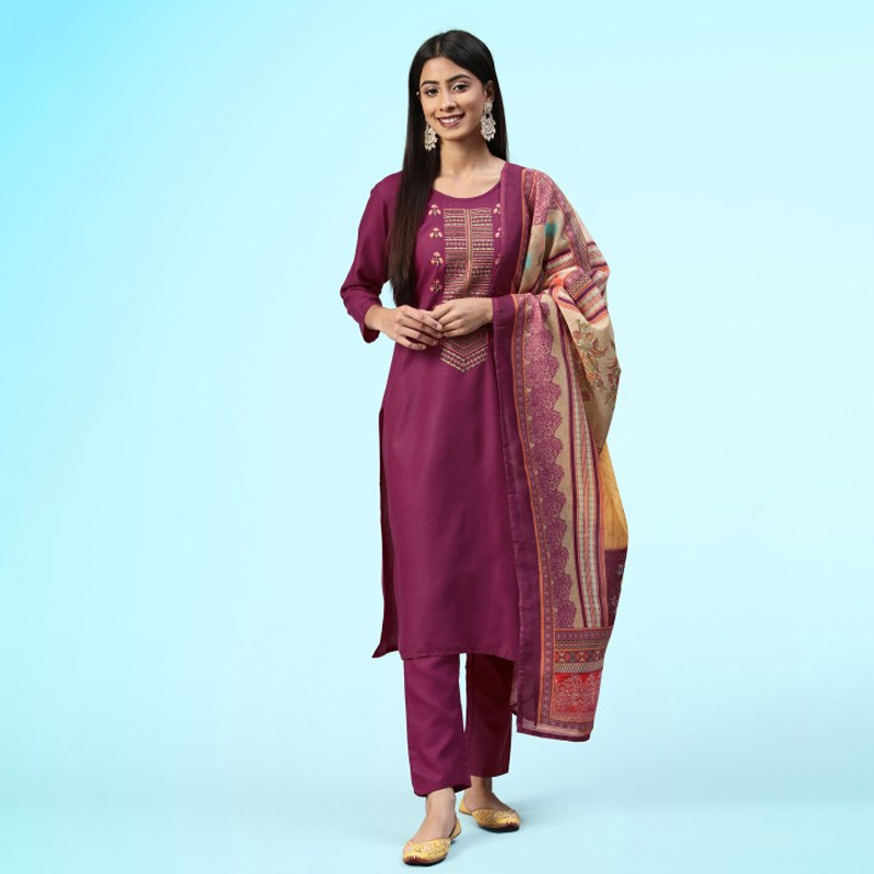 Purple solid lehenga choli with dupatta, patchwork detail Purple solid ready to wear blouse, has a v-neck, sleeveless, zip closure, patchwork detail Purple solid ready to wear lehenga, has zip closure, flared hem Purple solid dupatta, solid border Size & Fit The model (height 5'8) is wearing a size S Material & Care Blouse Fabric: Georgette Lehenga Fabric: Georgette Dupatta Fabric: Georgette Dry Clean