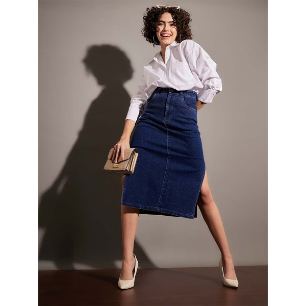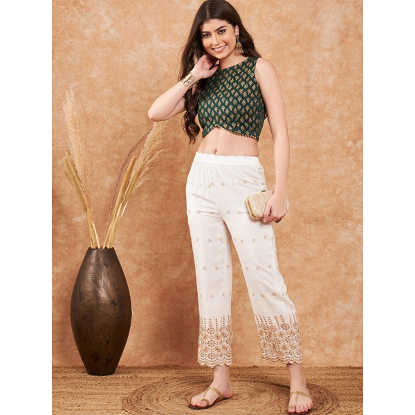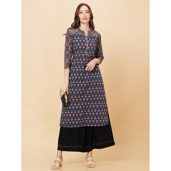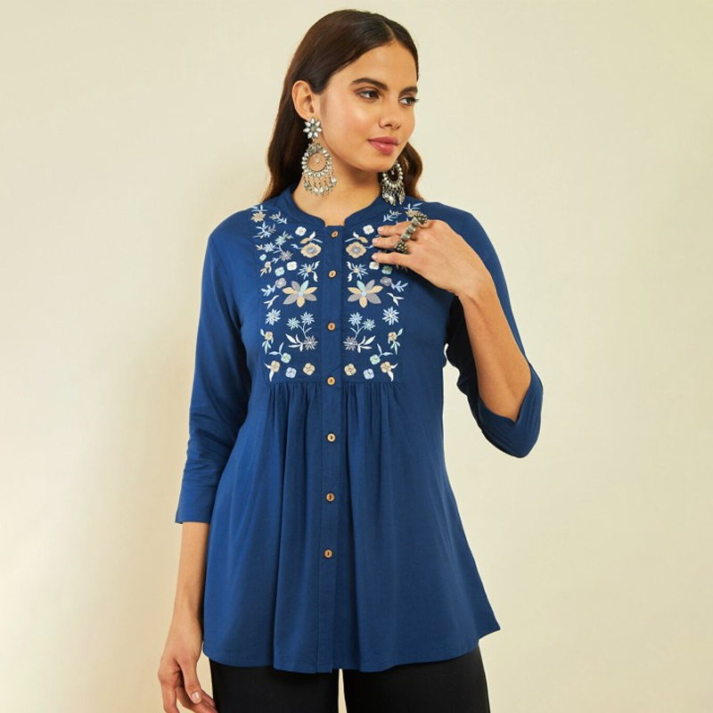 Embroidered Mandarin Collar Three-Quarter Sleeves Tunic