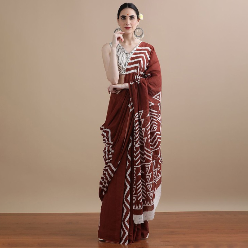 Brown & Black Ethnic Motifs Print Maxi Dress