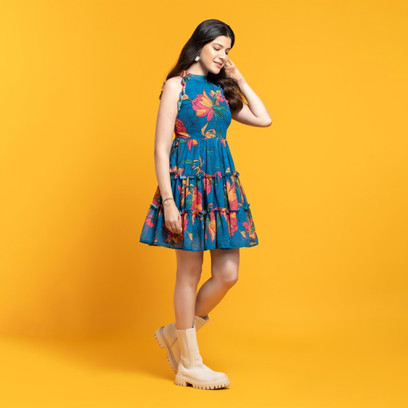 Printed Ready to Wear Halter Neck Smocked Lehenga & Blouse With Dupatta