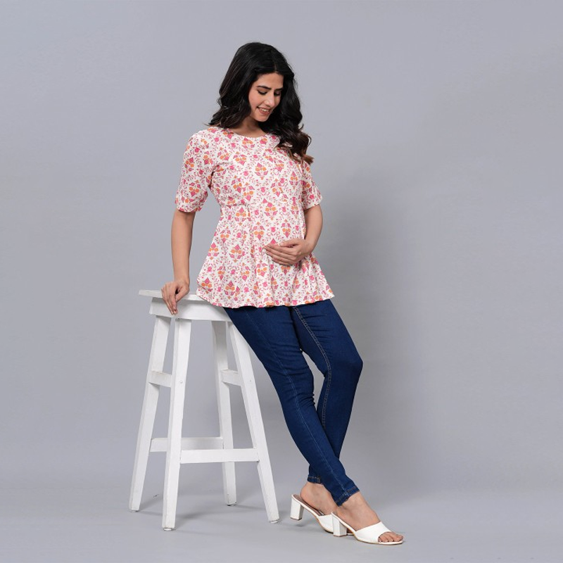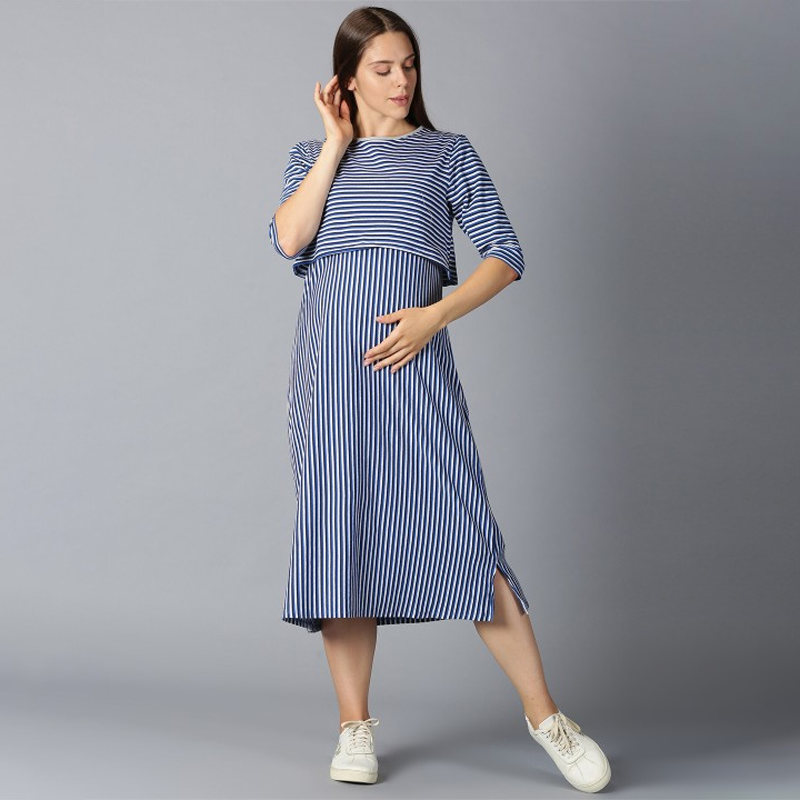 Women Typography Printed Cotton Maternity T-Shirt Dress