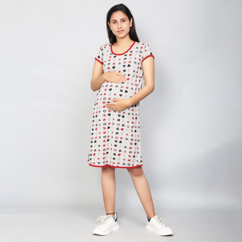 Women Typography Printed Cotton Maternity T-Shirt Dress