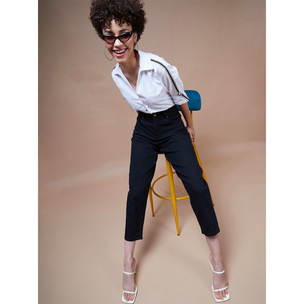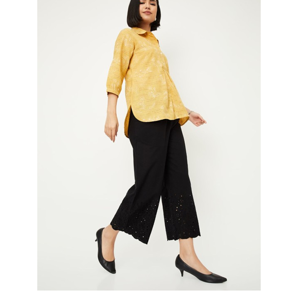 Embroidered Mandarin Collar Three-Quarter Sleeves Tunic