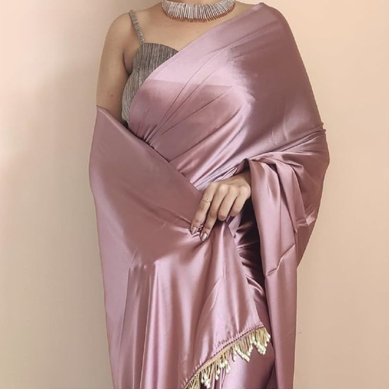 Design Details : Pink saree Embellished embellished saree with embellished border border Has beads and stones detail The saree comes with an unstitched blouse piece The blouse worn by the model might be for modelling purpose only. Check the image of the blouse piece to understand how the actual blouse piece looks like. Size & Fit : Length: 5.5 metres plus 0.8 metre blouse piece Width: 1.06 metres (approx.) Material & Care : Pure Georgette Dry clean only