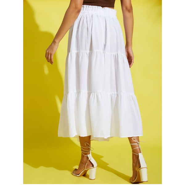 V-Neck Bell Sleeves Pure Cotton Tiered Fit & Flare Midi Dress