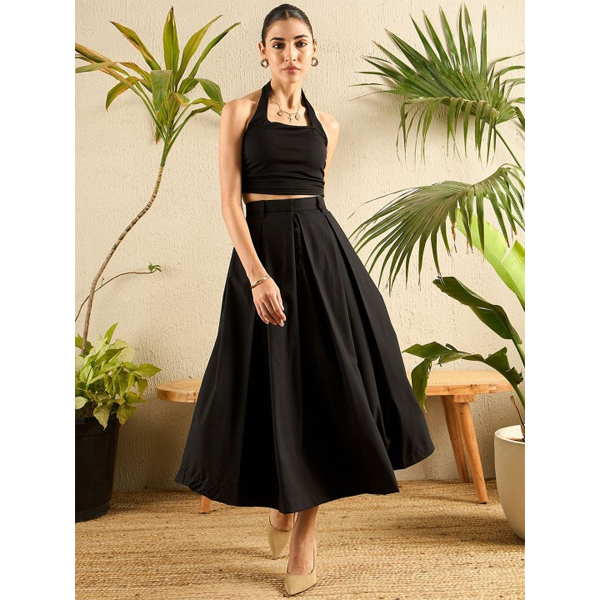 Printed Ready to Wear Halter Neck Smocked Lehenga & Blouse With Dupatta