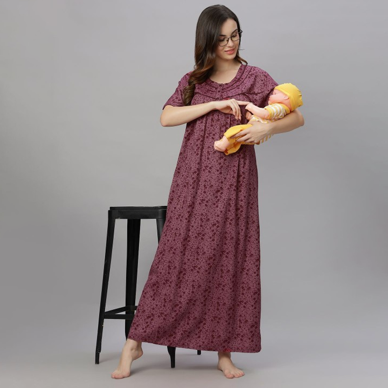 Purple Printed Maxi Maternity Sustainable Nightdress