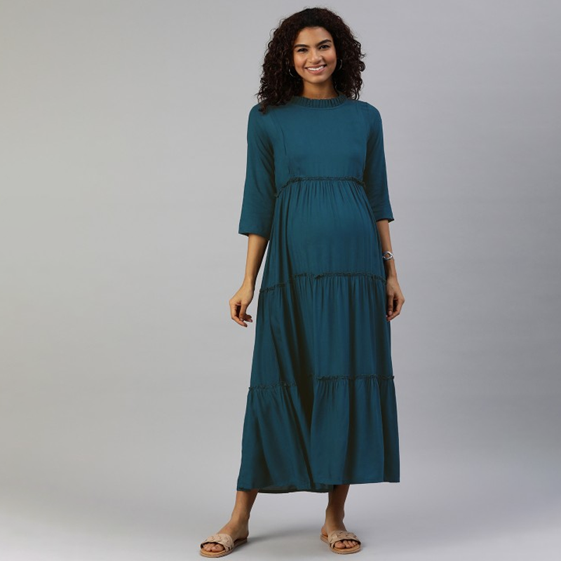 Women Maroon Solid Maternity Nursing Maxi Dress