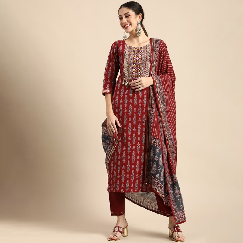 Women Red Ethnic Motifs Embroidered Pure Cotton Kurta